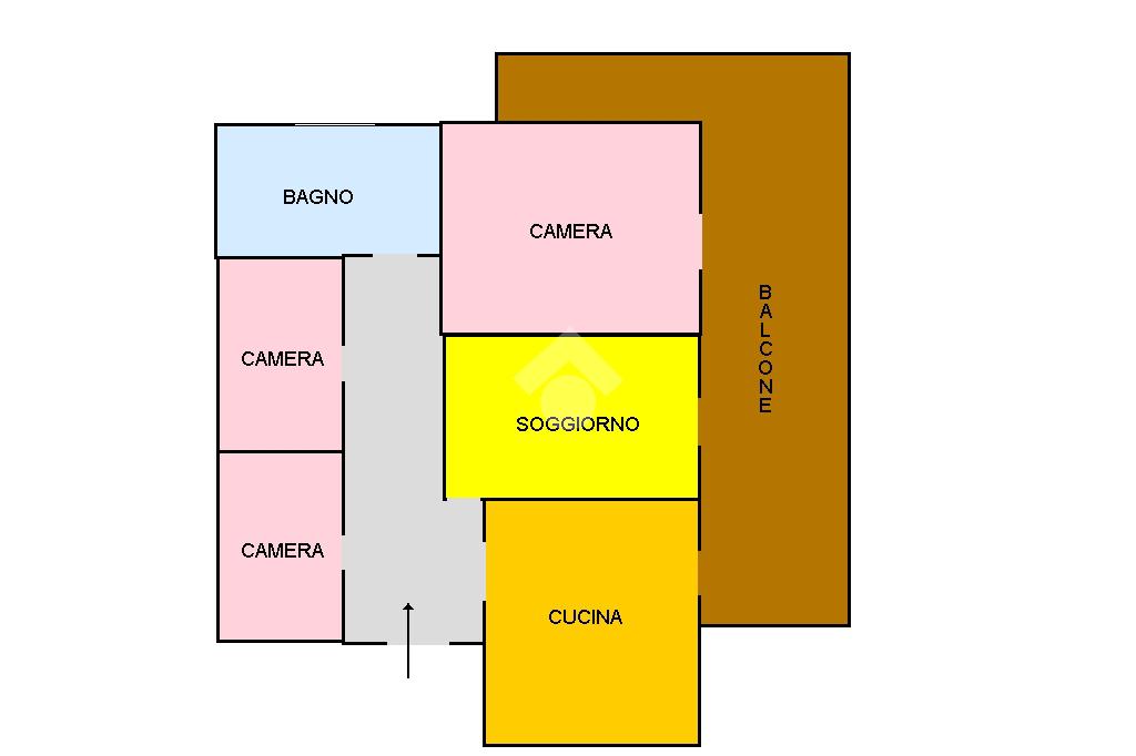 L'IMMOBILE: Luminoso appartamento al primo piano, composto da una spaziosa zona living con balcone collegato agli altri locali della casa: una cucina abitabile e una camera matrimoniale.